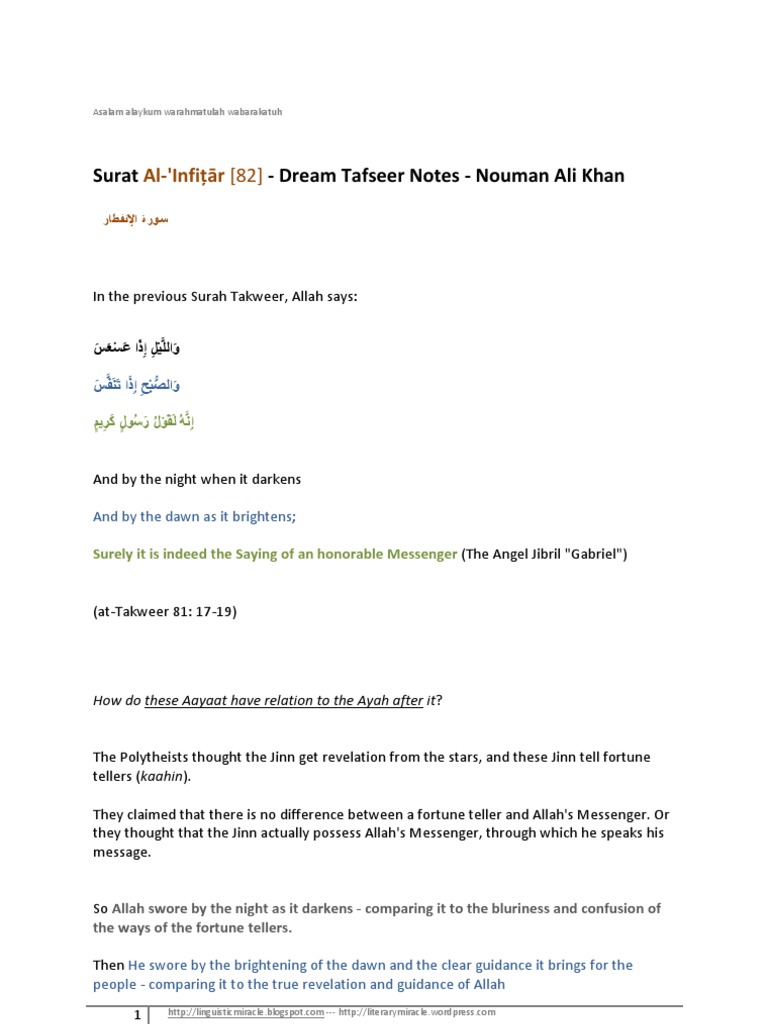 | Baca: Surah Infitar Dream Tafseer Notes Nouman Ali Khan Pdf Religious Behaviour And Experience Religious Belief And Doctrine |